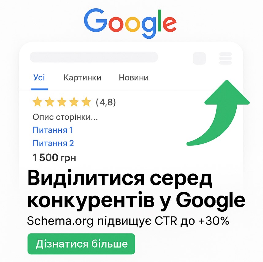 Налаштування Schema.org — це швидкий спосіб зробити сайт помітнішим у Google, отримати якісніший трафік і підвищити конверсію без зміни дизайну.