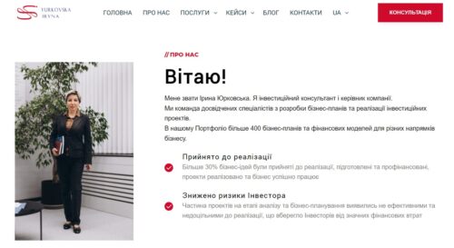 Сайт-візитка для інвестиційного консультанта – Ірини Юрковської у співпраці з нашими партнерами Україна Будівельна.